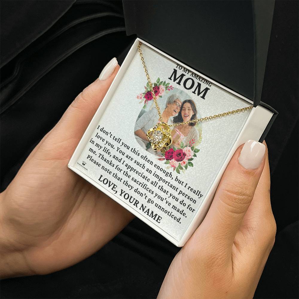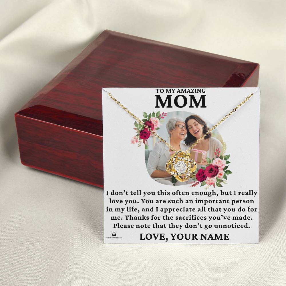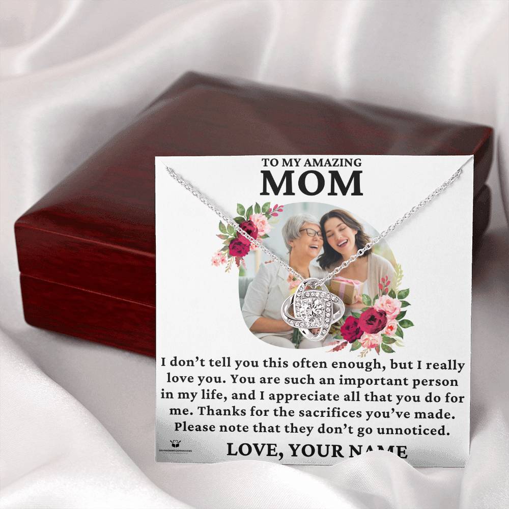 [ALMOST SOLD OUT] Personalized Message Card - To My Amazing Mom - You Are Such an Important Person In My Life - Love Knot Necklace