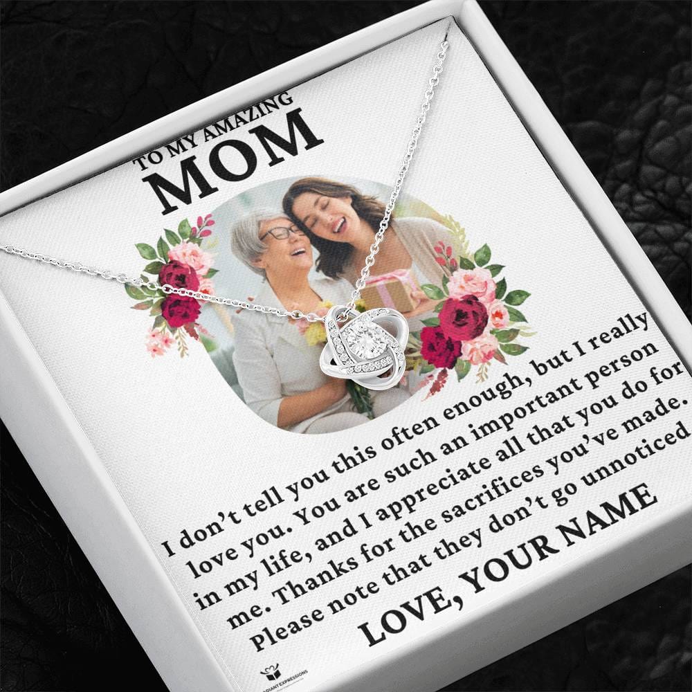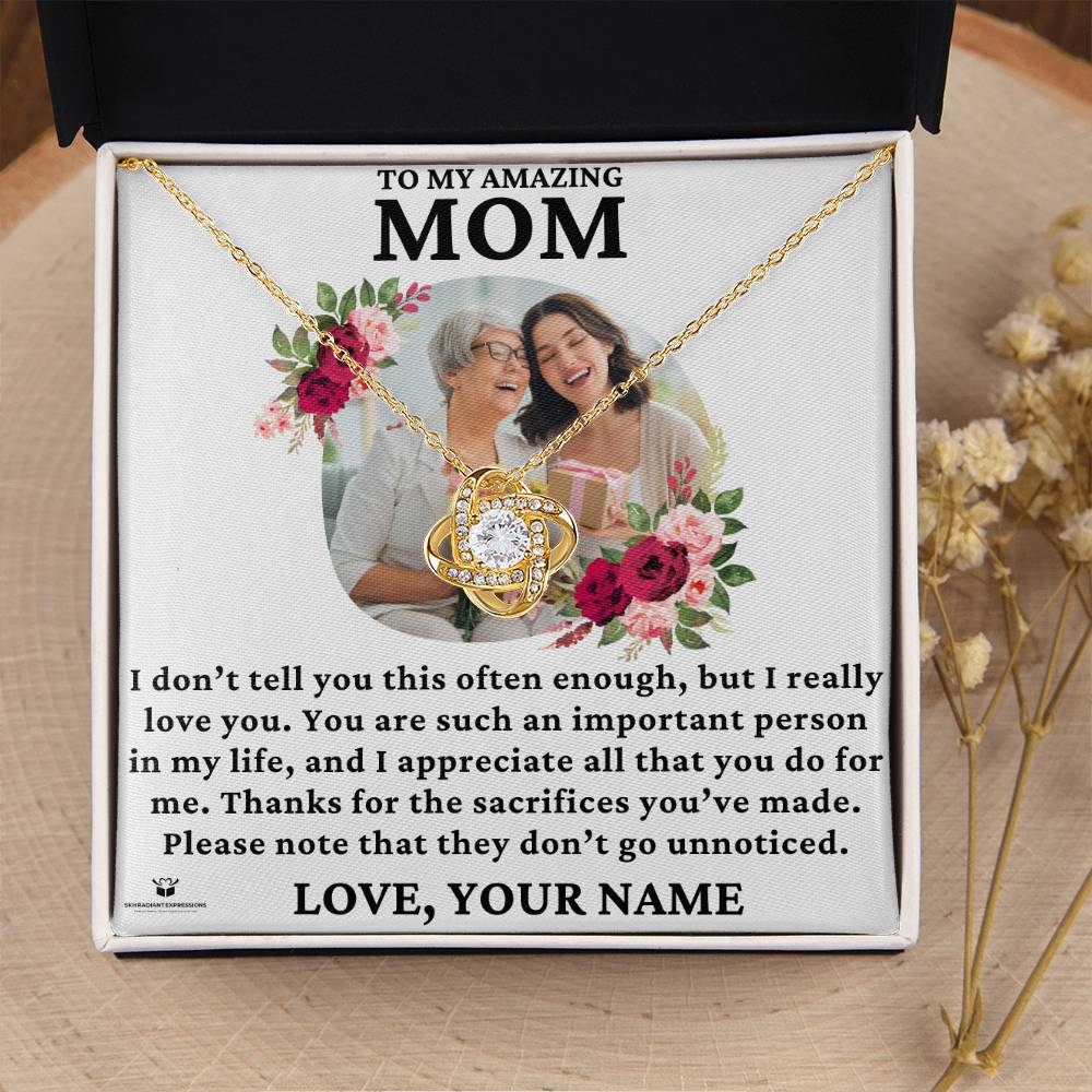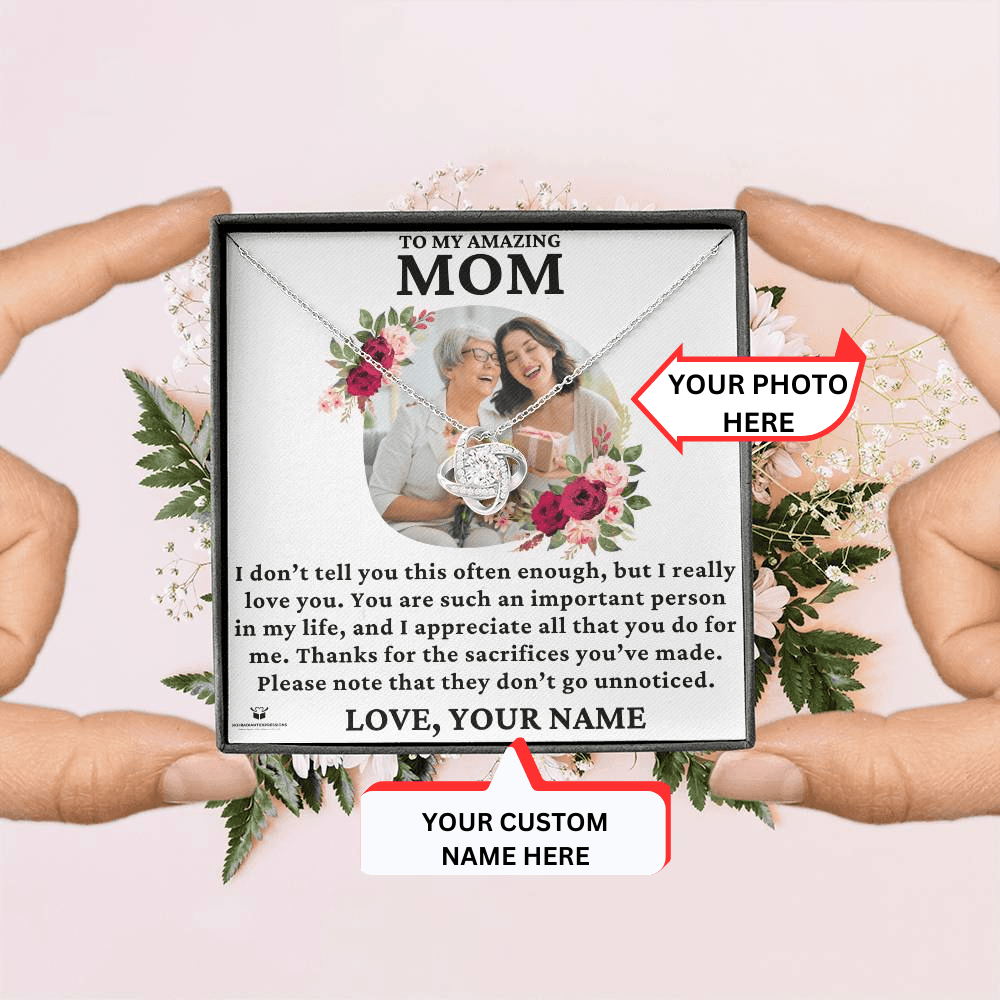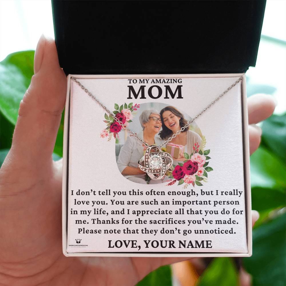 [ALMOST SOLD OUT] Personalized Message Card - To My Amazing Mom - You Are Such an Important Person In My Life - Love Knot Necklace