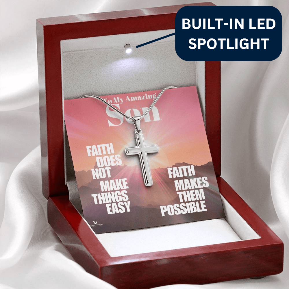 To My Amazing Son - Faith Makes All Things Possible - Stainless Steel Cross Necklace
