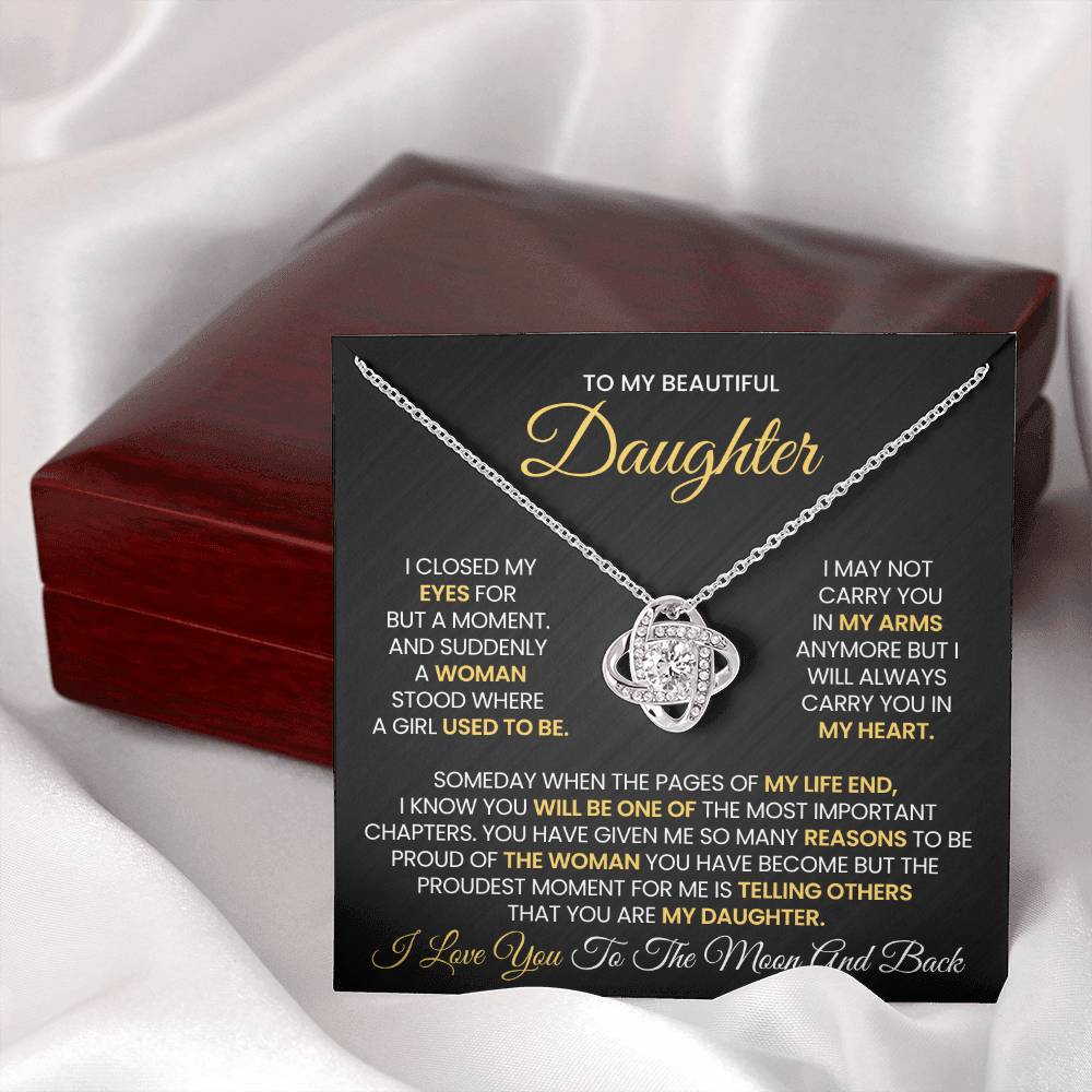 To My Beautiful Daughter - I'll Always Carry You in My Heart - Love Knot Necklace