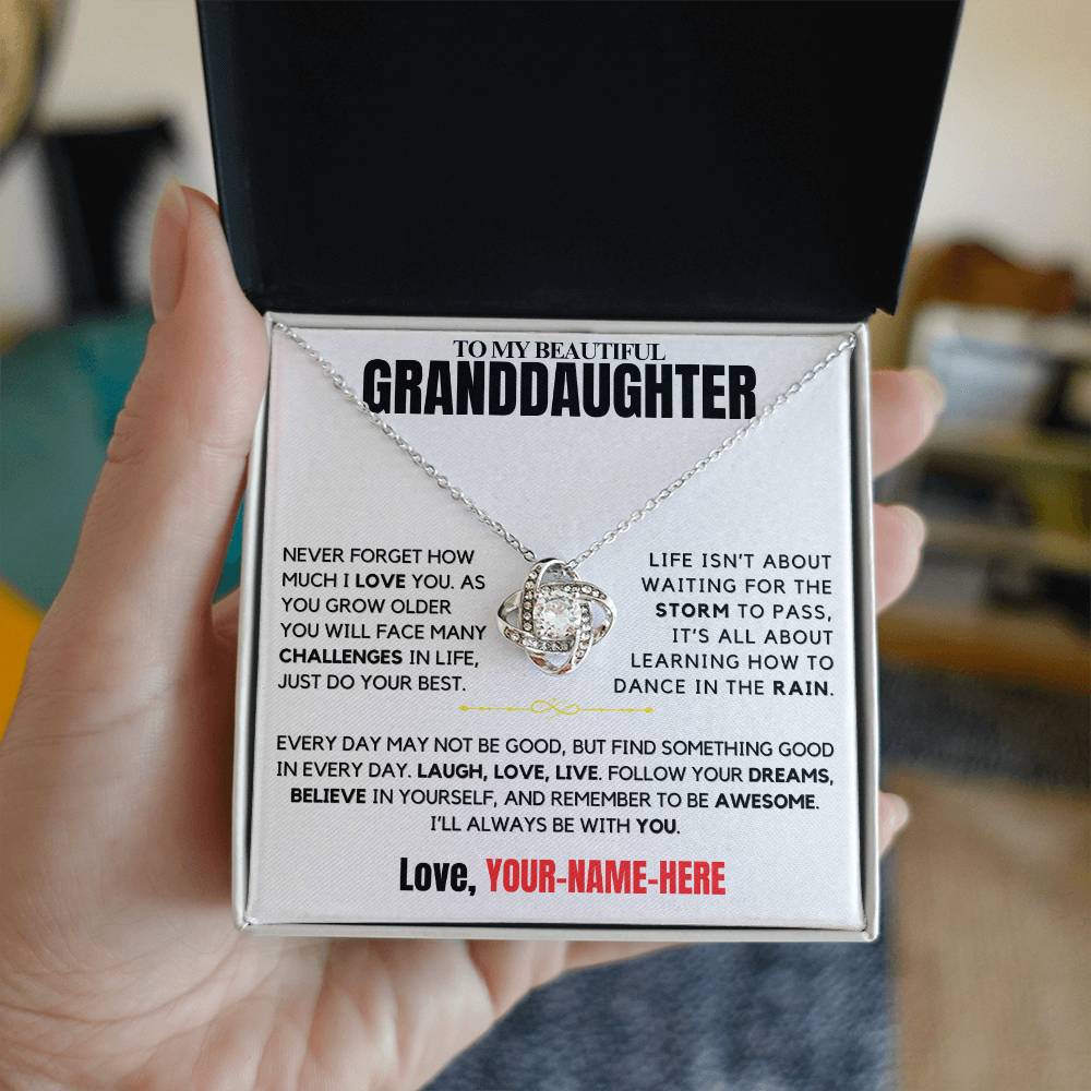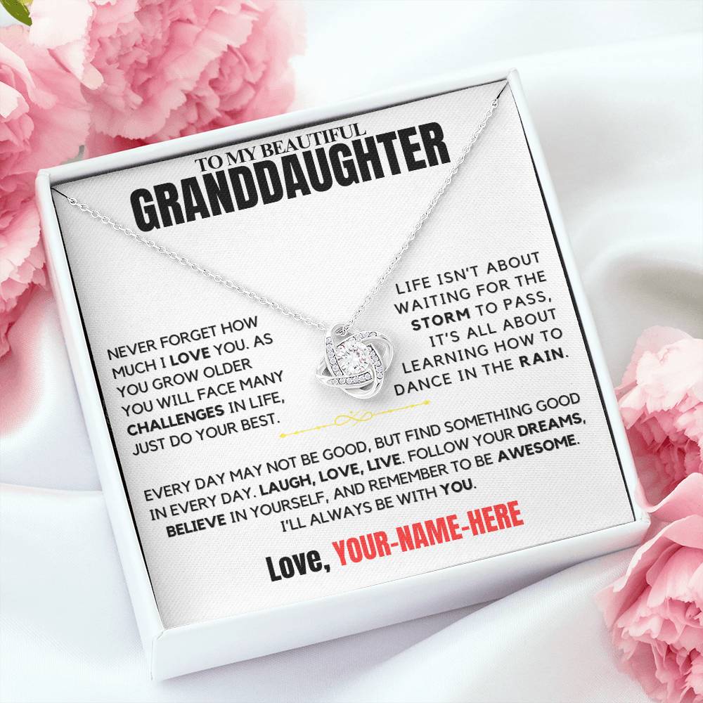To My Beautiful Granddaughter - Never Forget That I Love You - Grandma - Grandpa - Love Knot Necklace