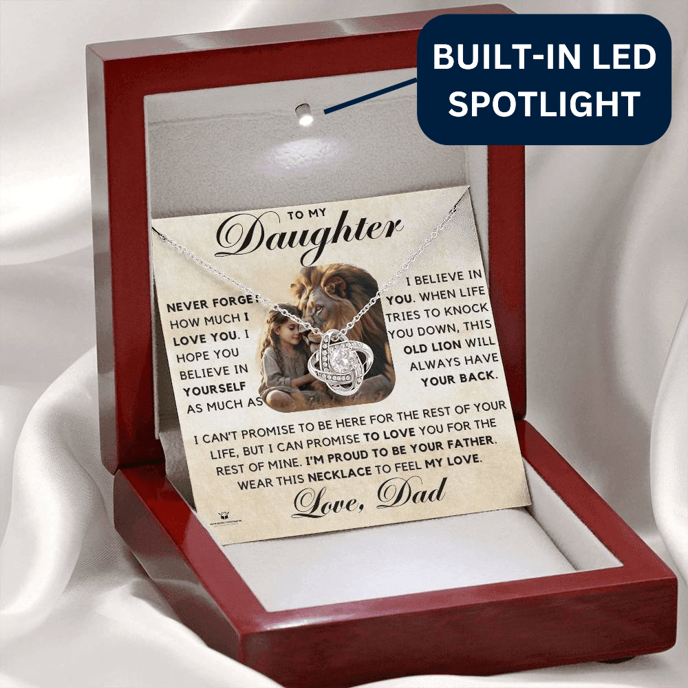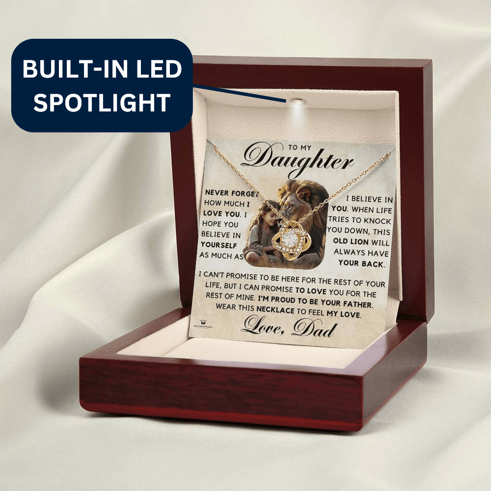 Never forget how much I love you. I hope you believe in yourself as much as I believe in you. when life tries to knock you down, this old lion will always have your back. I canāt promise to be here for the rest of your life, but I can promise to love you for the rest of mine. Iām proud to be your father. Wear this necklace to feel my love.Ā Love, Dad"