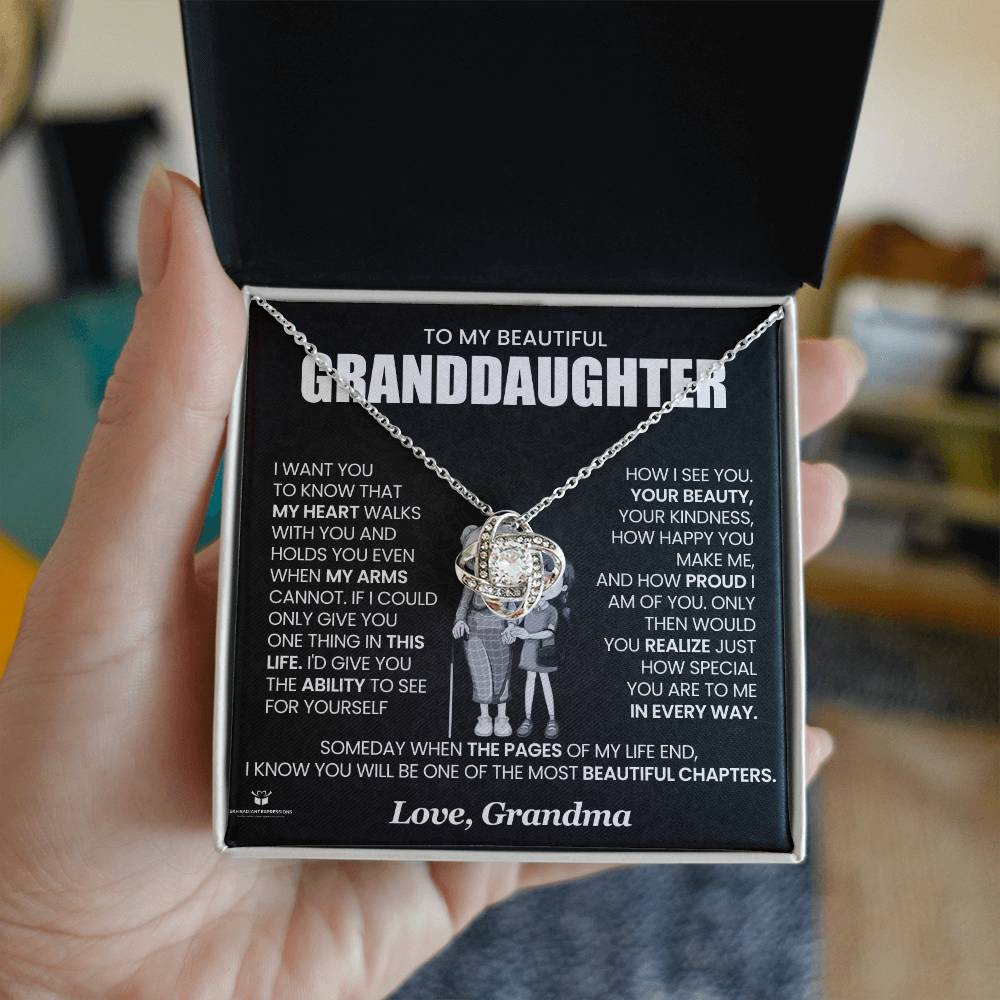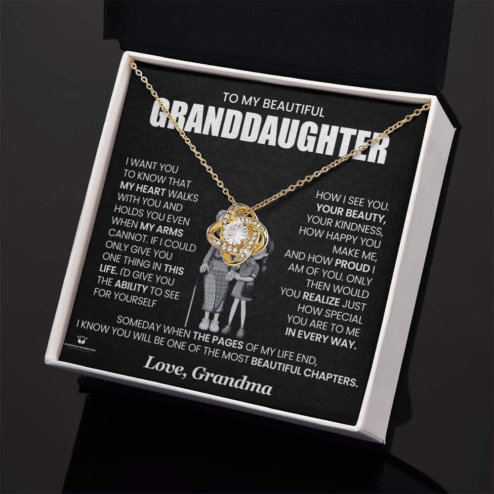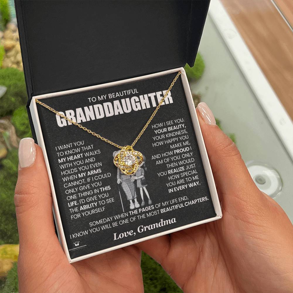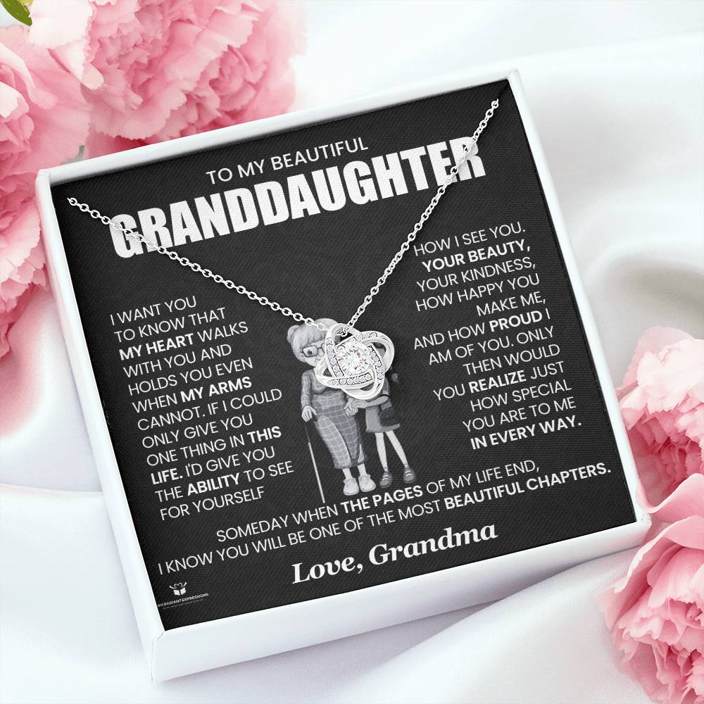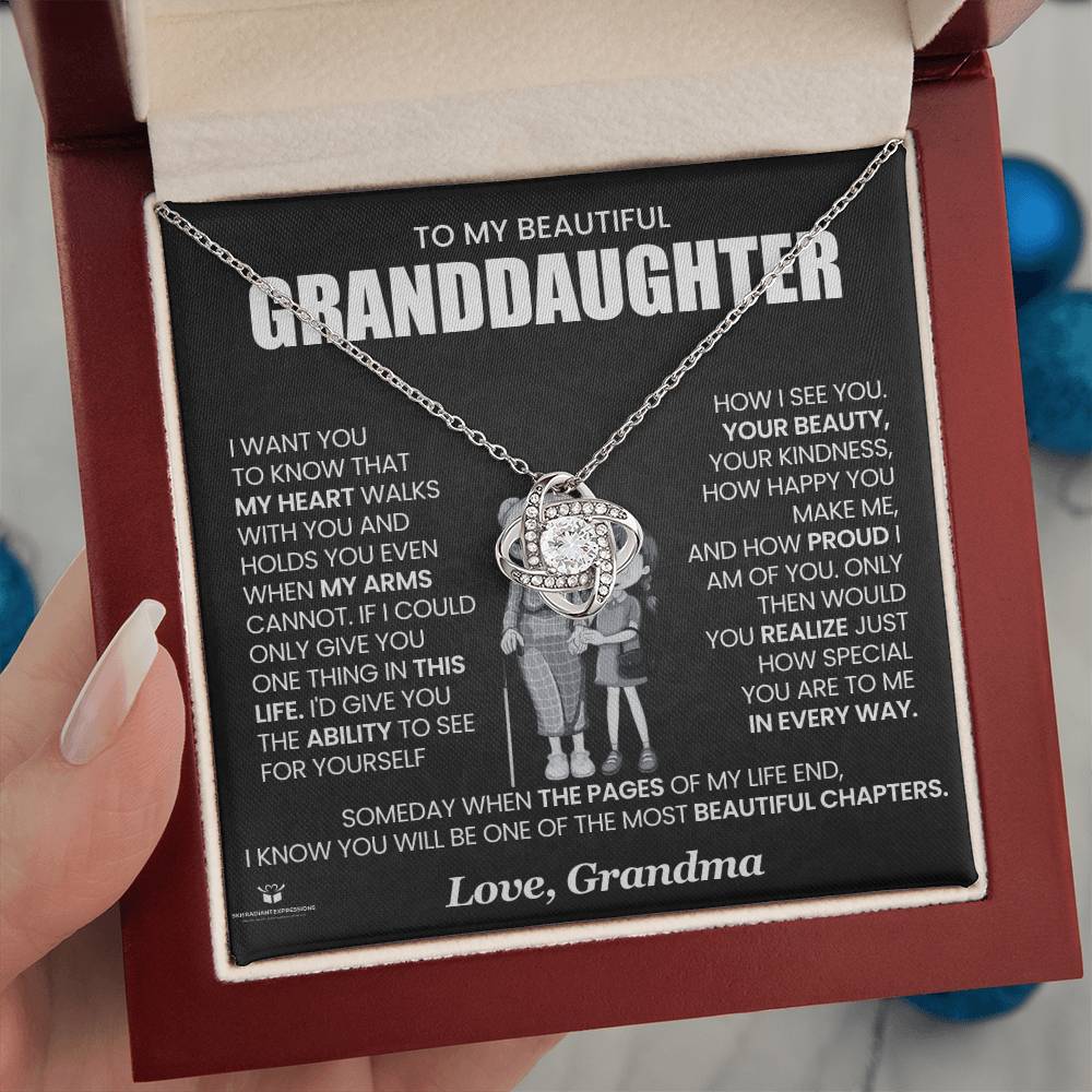 To My Granddaughter - My Heart Walks With You - Love Knot Necklace