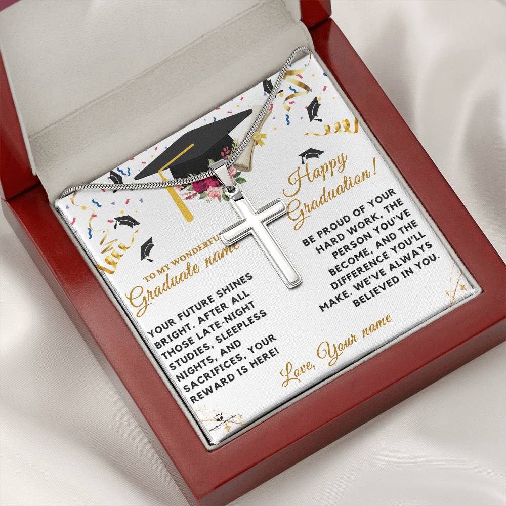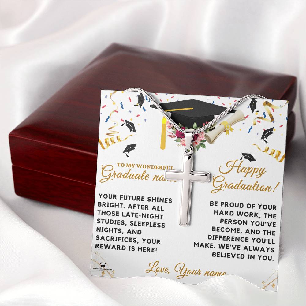 - Exclusive Message Card:Ā "To My Wonderful [Graduate's Name], Your future shines bright. After all those late-night studies, sleepless nights, and sacrifices, your reward is here! Be proud of your hard work, the person you've become, and the difference you'll make. We've always believed in you. Love, Your Name."